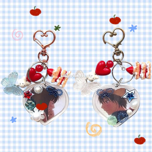keychain frames. sawako x kazehaya keychains + silly cat keychain 🧸🍒✨